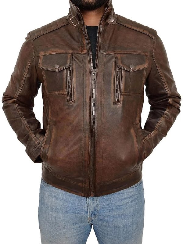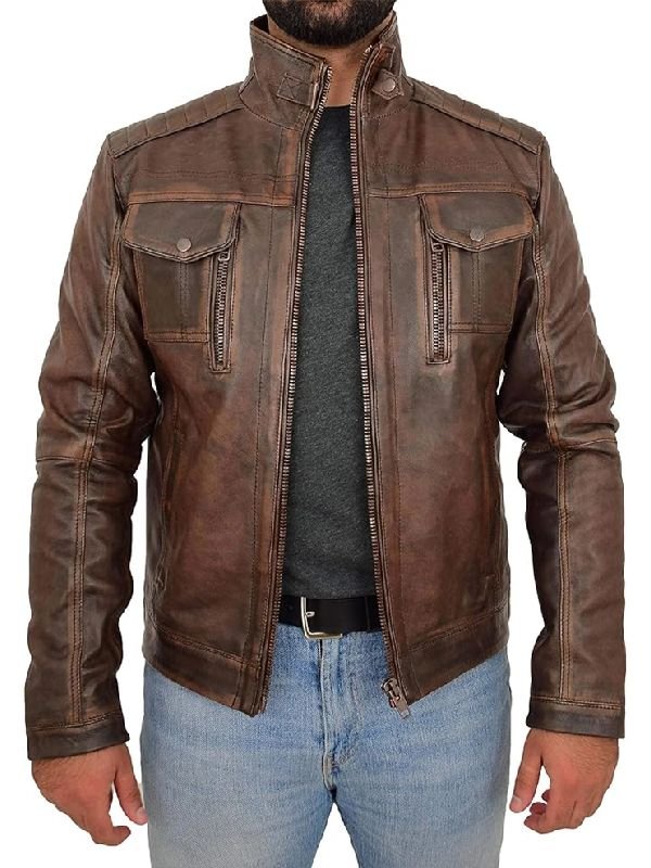 Distressed Leather Biker Jacket – Retro Motorcycle Style