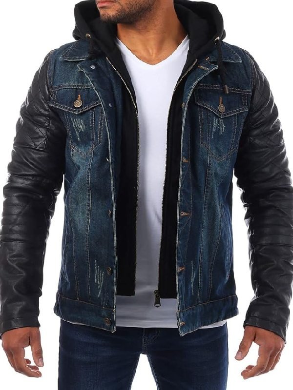 - Material: Denim with Leather Sleeves